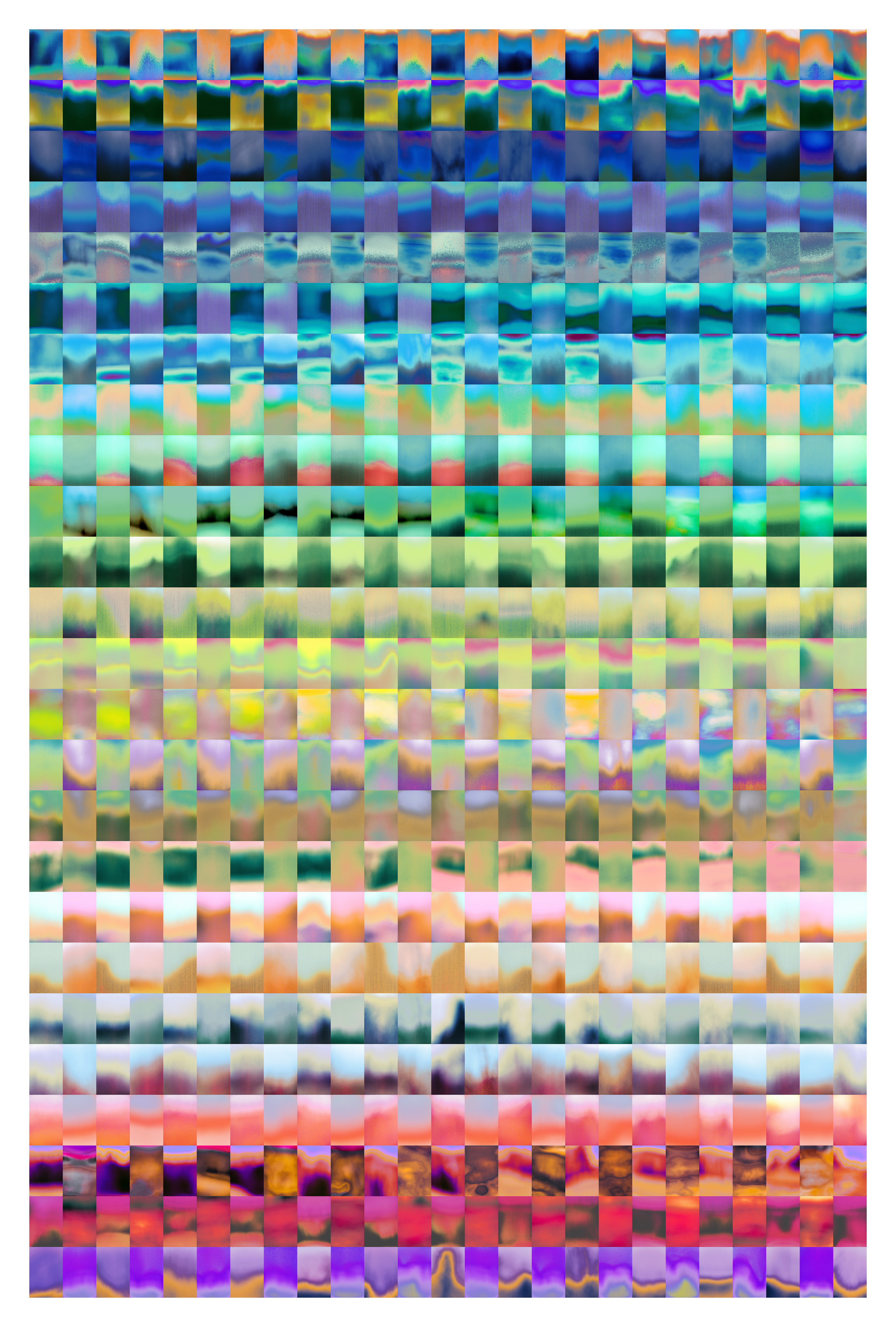 Loucas Braconnier (Figure31), 2022- 60 digital images and erc-721 tokens, ethereum mainnet Variable dimensions, JPEG files. A scattered composite history, reillustrated through machine hallucinations prematurely arrested, refusing accurate representation. Individual outputs altered into pixellated textures, then force-fitted through flattening constraints. Descriptions of historical and cosmographical images from Aby Warburg's Mnemosyne Atlas are fed to a VQGAN+CLIP neural network, and the generation process is stopped early on after a couple of intervals to preserve the incomplete state of outputs. These proto-images are then processed with different post-production tools and arranged into grids following their original planche's layouts. Inside the description of each token, there is a folder link containing the prompts used for each planche and their individual processed images. Collectors can use these individual images as they see fit. 60 compositions released progressively starting 29/05/2022, 22 have been minted so far. Acquire on demand.