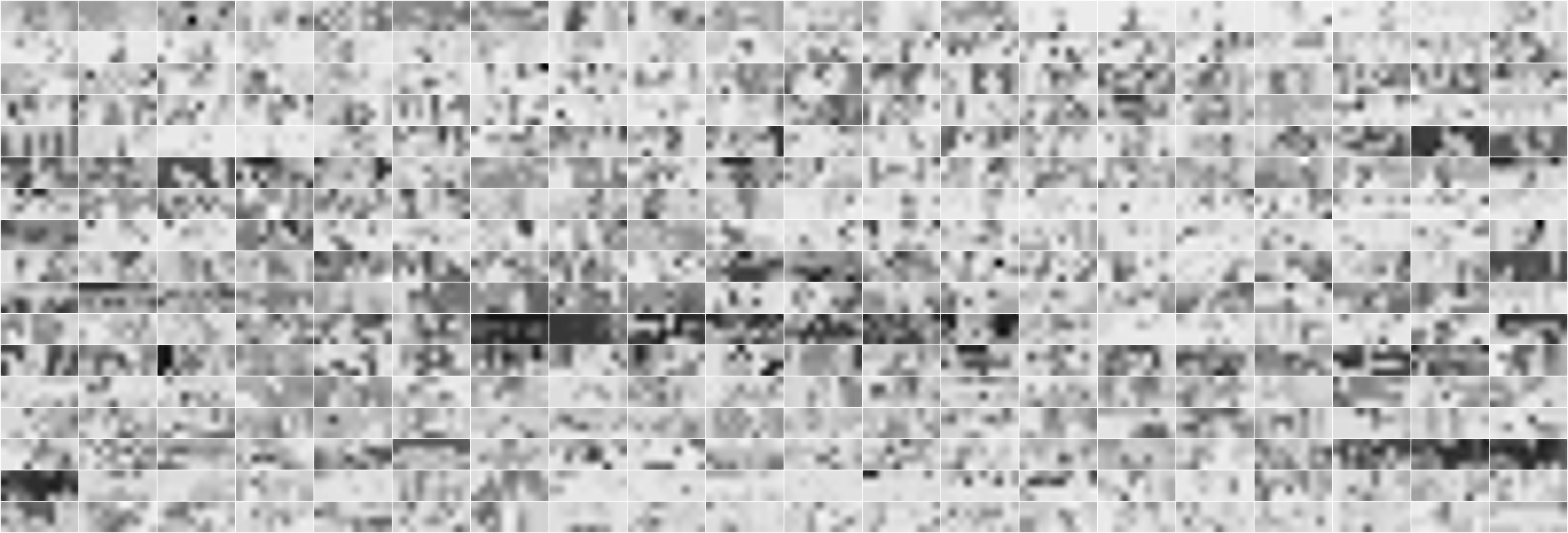 Loucas Braconnier (Figure31), 2021 340 digital images and erc-1155 tokens, ethereum mainnet 10000 x 4000 px, B&W PNG files. A loss of memory and information, caused, and repaired, by an automated algorithmic process. The machine fills the void it itself created in an attempt to parallel the experience of the characters depicted in the source material. 340 individual frames from Alain Renais' 1961 Last Year at Marienbad are autonomously reduced to grayscale 4x10 pixel grids then scaled up 1000 times using a bilinear interpolation algorithm. Each artwork can be recreated using only its title, which contains the necessary instructions and information for this process: LYAM_serial number_grid format_concatenated grayscale values string_scale_interpolation algorithm. Collectors only need to save the title of their token to safekeep the work. The collection was made with banal tools and deployed via a shared standardized smart contract, entering into dialogue with, and acting as a counterpoint to, generative art and on-chain storage. A gesture of contradiction towards the prevalent idea that good art requires complex technical apparatus.